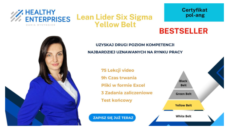 Ale bez solidnych podstaw trudno iść dalej. Yellow Belt daje właśnie tę bazę – uporządkowaną, praktyczną i uniwersalną.